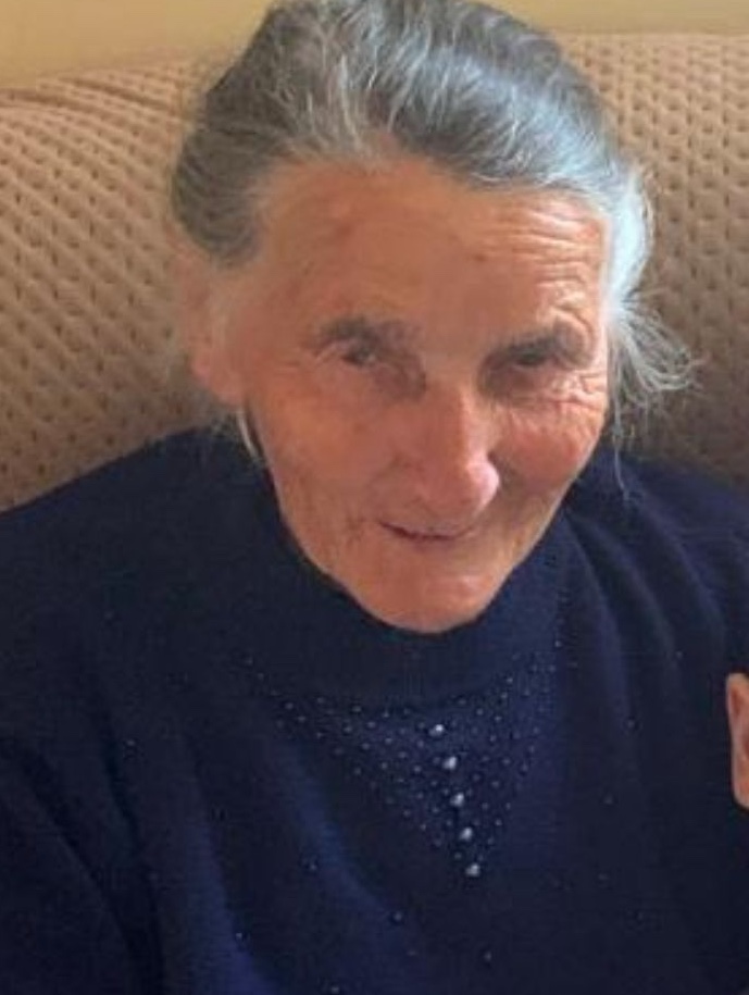 Була одягнена: У темно-зелену куртку, шерстяну синю хустку, сіру спідницю, чорні капці зі штучним хутром.
