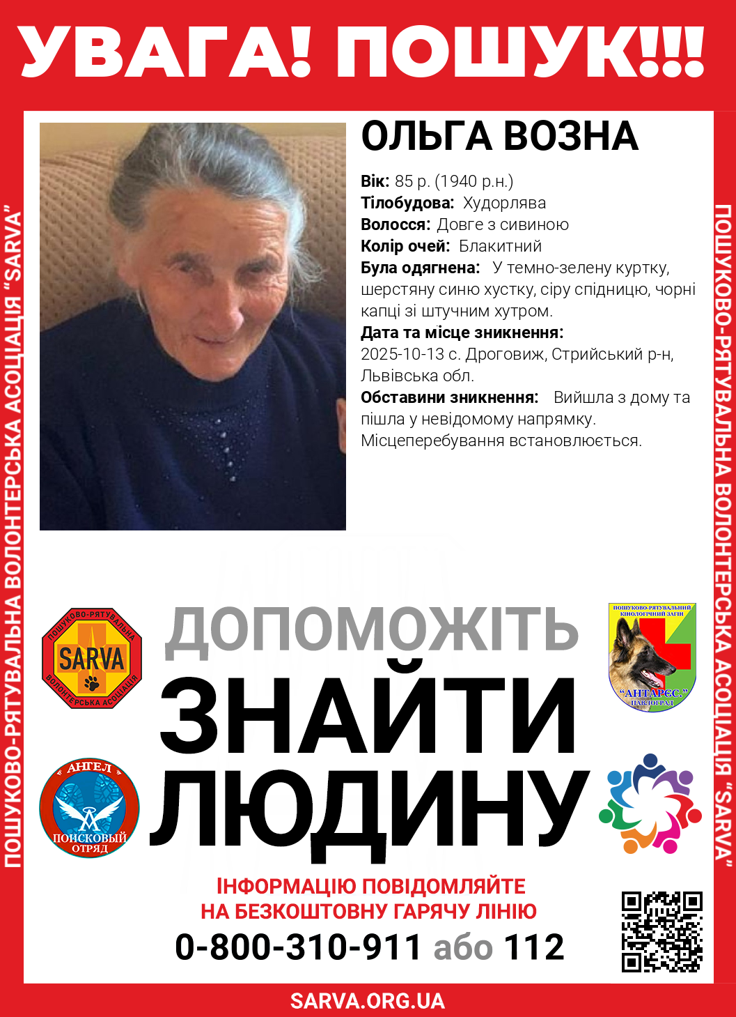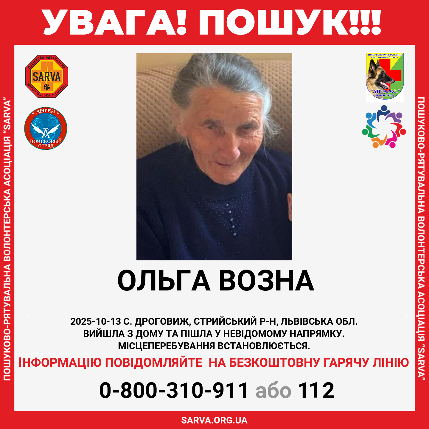 Обставини зникнення: Вийшла з дому та пішла у невідомому напрямку. Місцеперебування встановлюється.