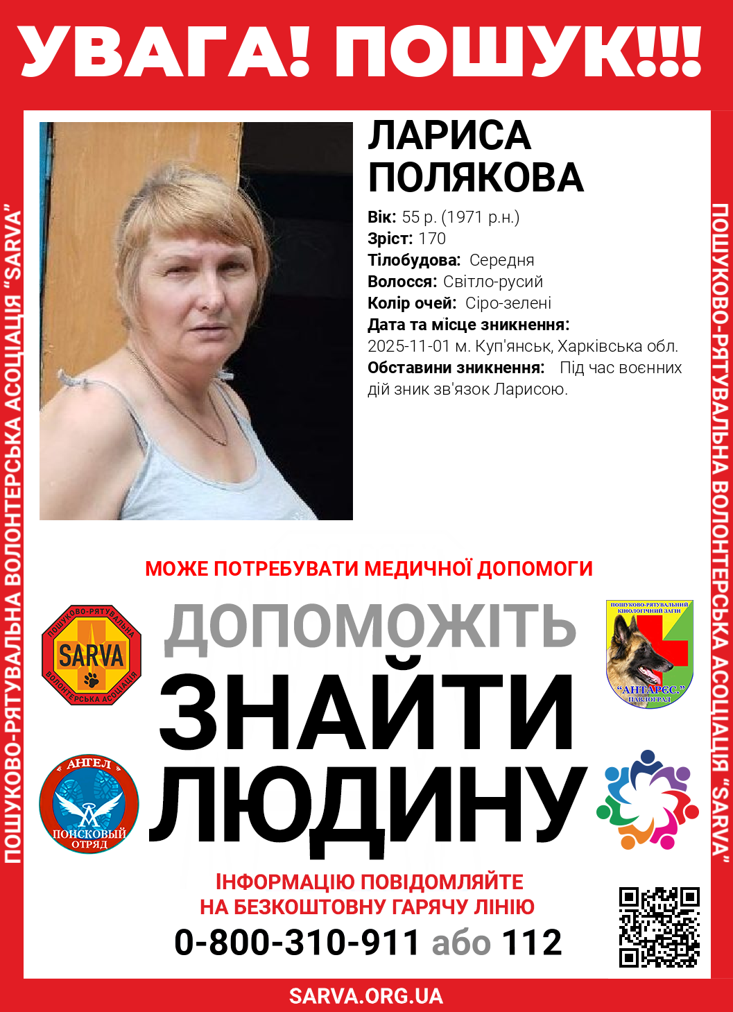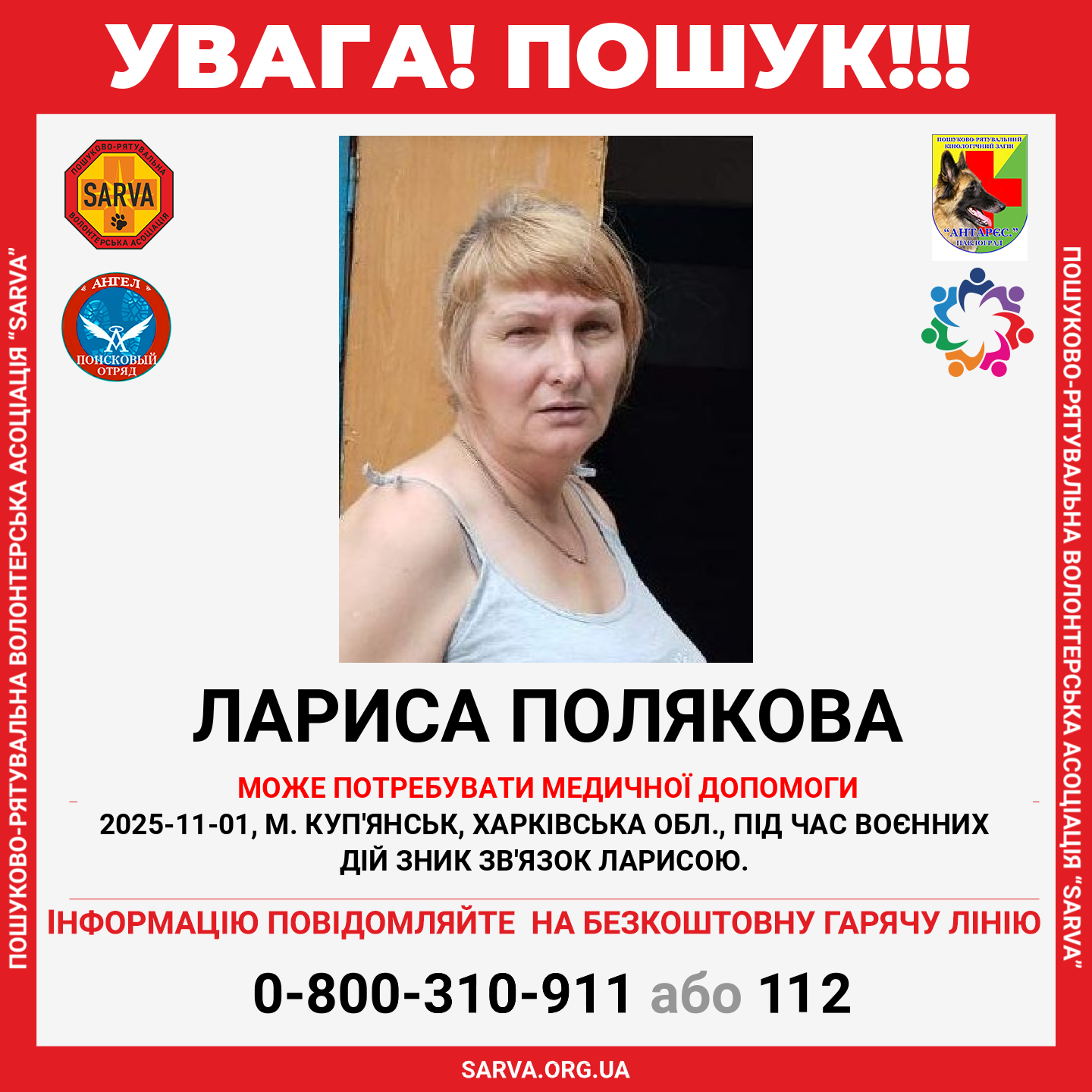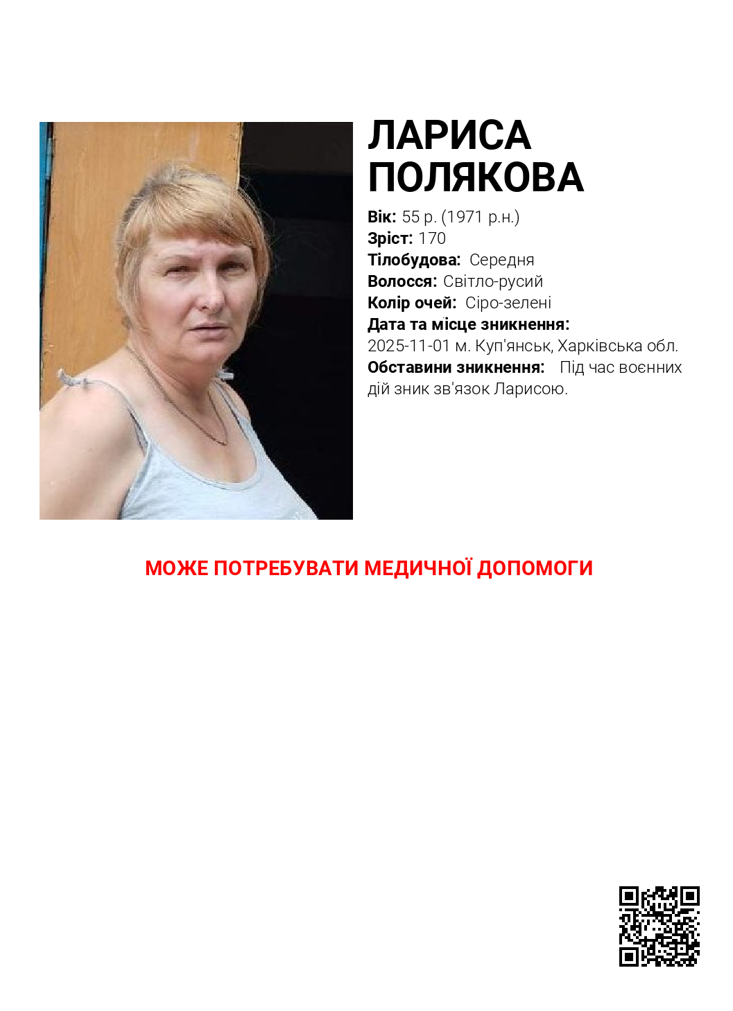 Обставини зникнення: Під час воєнних дій зник зв'язок Ларисою.
