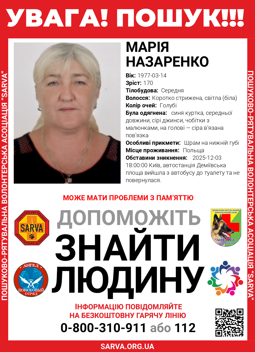 Обставини зникнення: вийшла з автобусу до туалету та не повернулася.