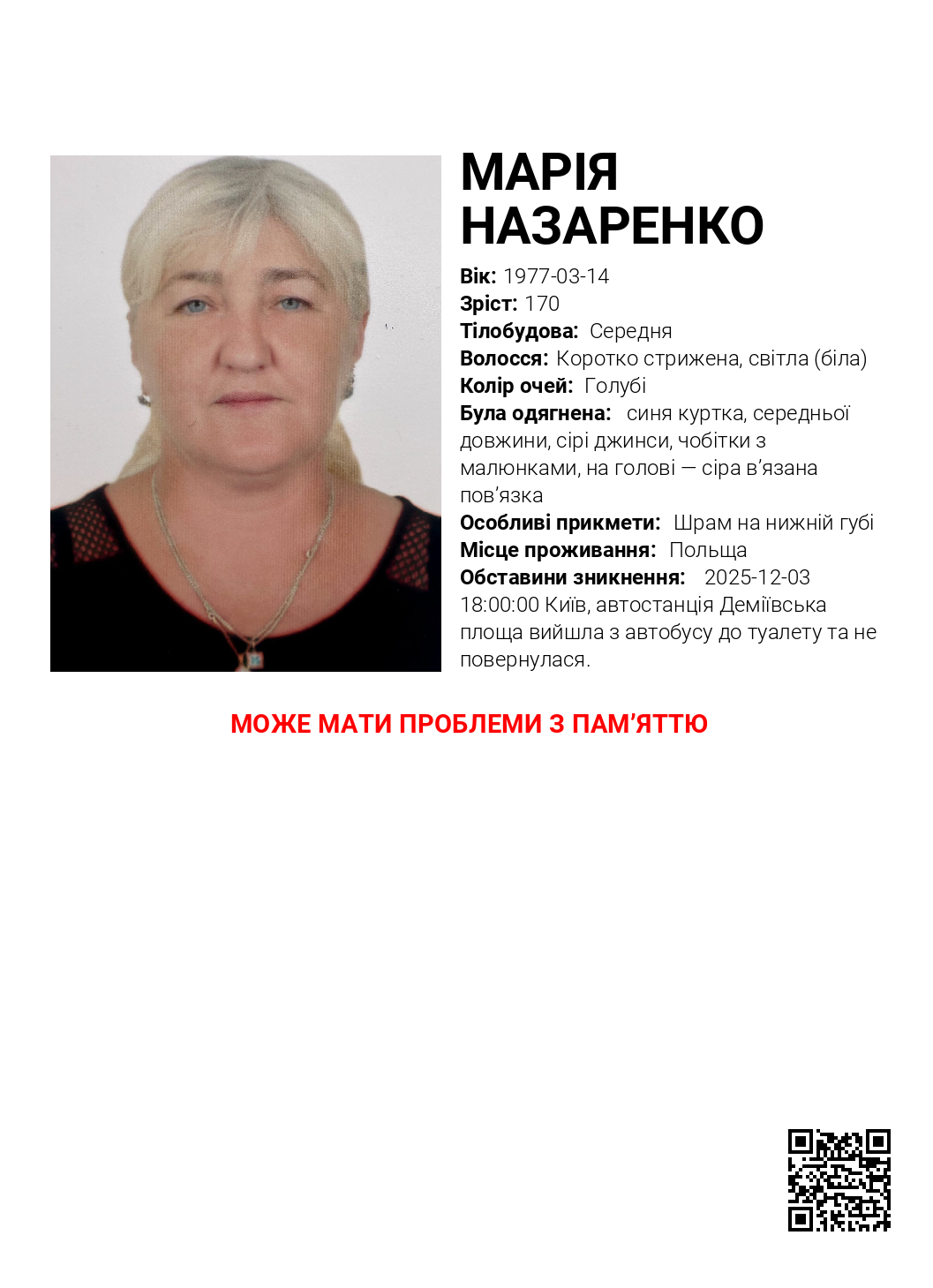Обставини зникнення: вийшла з автобусу до туалету та не повернулася.