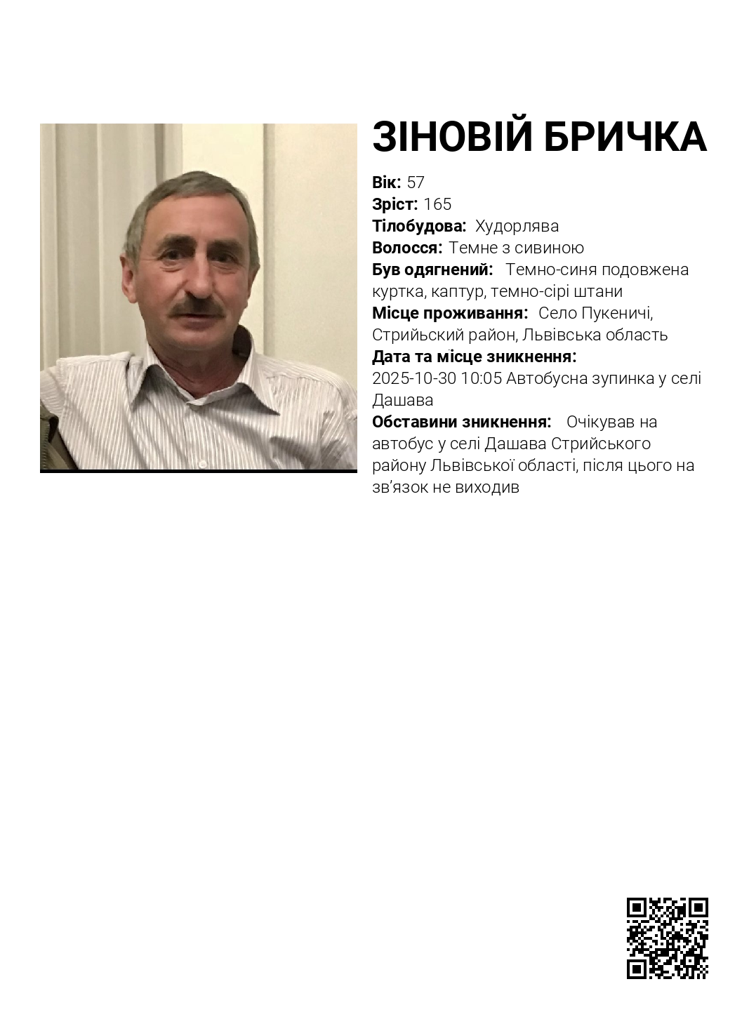 Обставини зникнення: Очікував на автобус у селі Дашава Стрийського району Львівської області, після цього на звʼязок не виходив